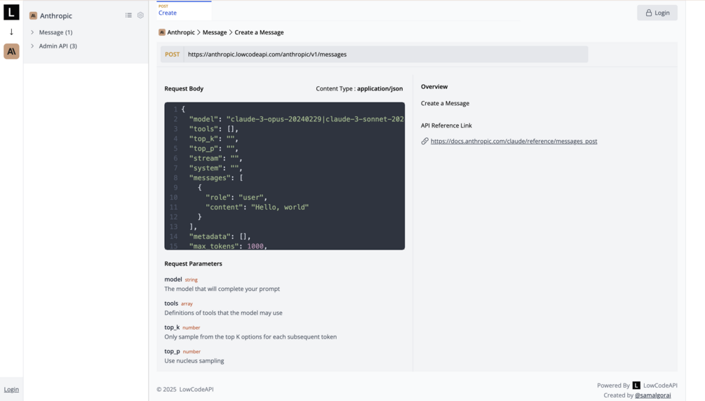 LowCodeAPI Anthropic API